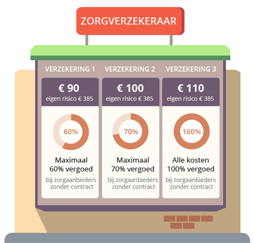 Hoeveel je zelf betaalt als zorg niet volledig onder de zorgverzekering valt, verschilt per zorgverzekering. Eén verzekeraar kan verschillende zorgverzekeringen aanbieden met een andere maximale vergoeding.