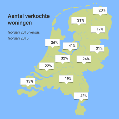 De overspannen woningmarkt in Amsterdam is niet de standaard voor heel Nederland. Toch worden ook daar weer meer huizen verkocht en stijgen de prijzen. Maar zelfs in Utrecht, Den Haag en Rotterdam is er momenteel (nog?) geen sprake van een markt waarbij massaal meer geboden wordt dan de vraagprijs. Wel is het boven de vraagprijs bieden geen uitzondering meer. Vooral instapklare woningen worden steeds vaker voor die prijs verkocht.