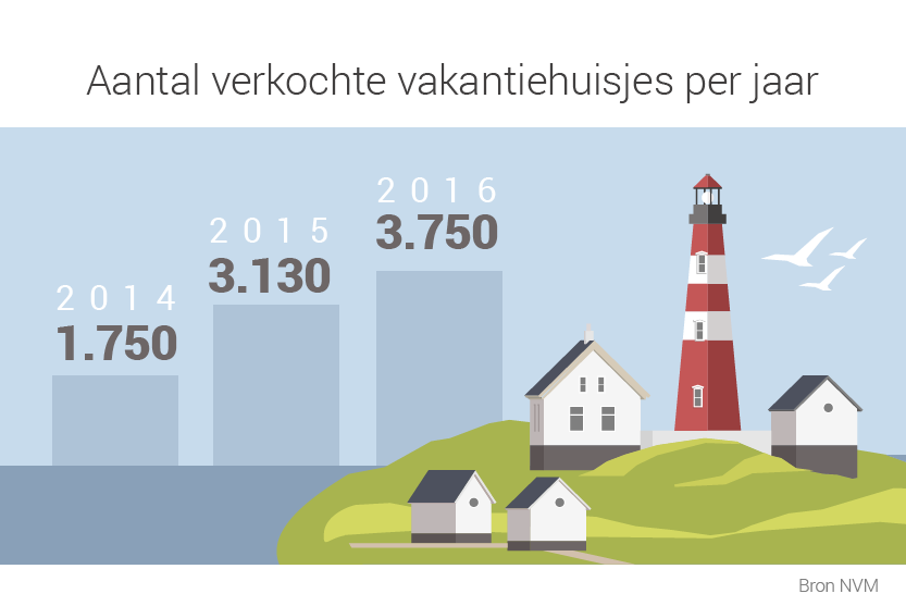 Heb jij interesse in een vakantiehuisje in eigen land? Het zijn gewilde woningen, zo blijkt uit cijfers van makelaarsvereniging NVM. Vorig jaar zijn er 3.750 vakantiehuizen verkocht. De lage spaar- en hypotheekrente zijn de belangrijkste redenen. Als je ook overweegt een vakantiehuisje te kopen, waar moet je dan aan denken?