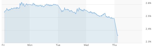 Verloop rente staatsleningen (10 jaar) afgelopen 5 dagen